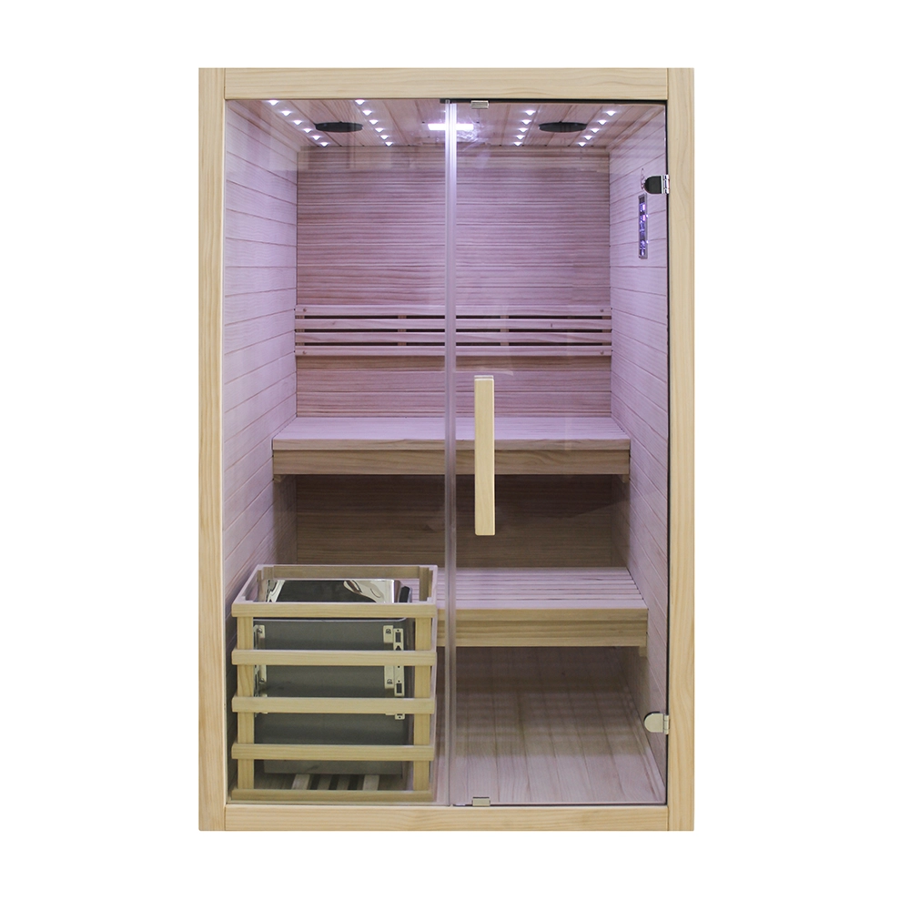 Die finnische Sauna, auch Trockensauna genannt, ist eine traditionelle Saunaart, bei der mit Hilfe eines in der Sauna installierten Heizofens eine hohe Temperatur erreicht wird. Der Elektroofen in der Sauna JJSPA JF122 ermöglicht eine einfache Installation, genaue Temperaturregelung, sorgt für Sicherheit bei der Nutzung und erzeugt keinen unangenehmen Rauch.