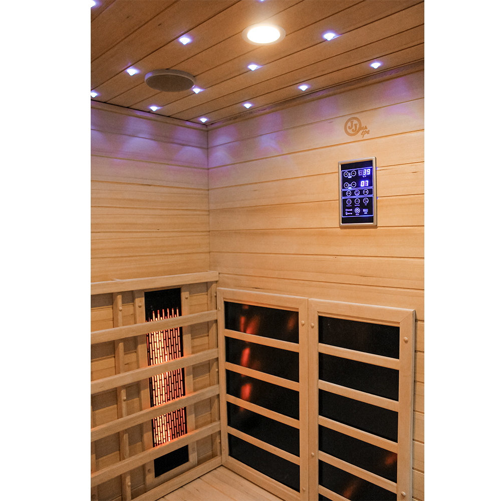 In der Infrarotsauna JI180 finden Sie eine sorgfältig zusammengestellte Reihe von Funktionen, die für ein umfassendes therapeutisches Erlebnis konzipiert sind. Dazu gehören hochwertige Heizelemente, digitale Bedienfelder, ergonomisch gestaltete Sitze, hochwertige Materialien und eine beruhigende Ambientebeleuchtung. Zusammen ergeben diese Elemente ein erholsames und pflegendes Erlebnis, das Ihr allgemeines Wohlbefinden fördert.